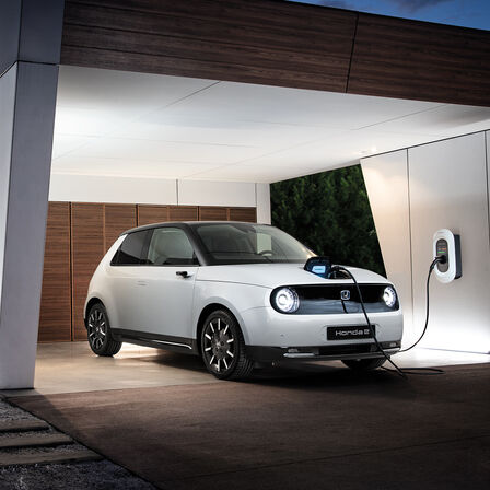 Das abgebildete Fahrzeug ist der Honda e:Ny1 Full Electric Advance in Aqua Topaz Metallic. Verbrauchs- und Emissionswerte (WLTP**) Reichweite: Stromverbrauch in kWh/100 km: 18,2; kombinierte CO2-Emissionen (g/km): 0. Kombinierte elektrische Reichweite: 412 km. Beim Honda e:Ny1 handelt es sich um ein batterieelektrisches Fahrzeug, das über einen Netzanschluss geladen werden muss. Keine Emissionen während der Fahrt. Die angegebene elektrische Reichweite kann von der bei tatsächlichen Fahrten erzielten Reichweite abweichen, da diese von unterschiedlichen Faktoren abhängig ist. Hierzu gehören der Ladestand des Akkus, (nach der Zulassung) angebrachtes Zubehör, die Witterungsbedingungen, der jeweilige Fahrstil sowie die Zuladung.
