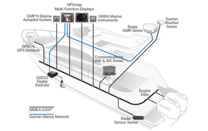 Standardisierte Technik der Vereinigung von elektronischen Herstellern NMEA (National Marine Electronics Association) zur Übertragen von Daten. Mit NMEA 2000 können verschiedenste elektronische Geräte in ein bordeigenes Netzwerk eingebunden werden und Daten untereinander austauschen. So können Motordaten an externe Geräte weitergeleitet werden wie z.B. Fishfinder oder Kartenplotter.