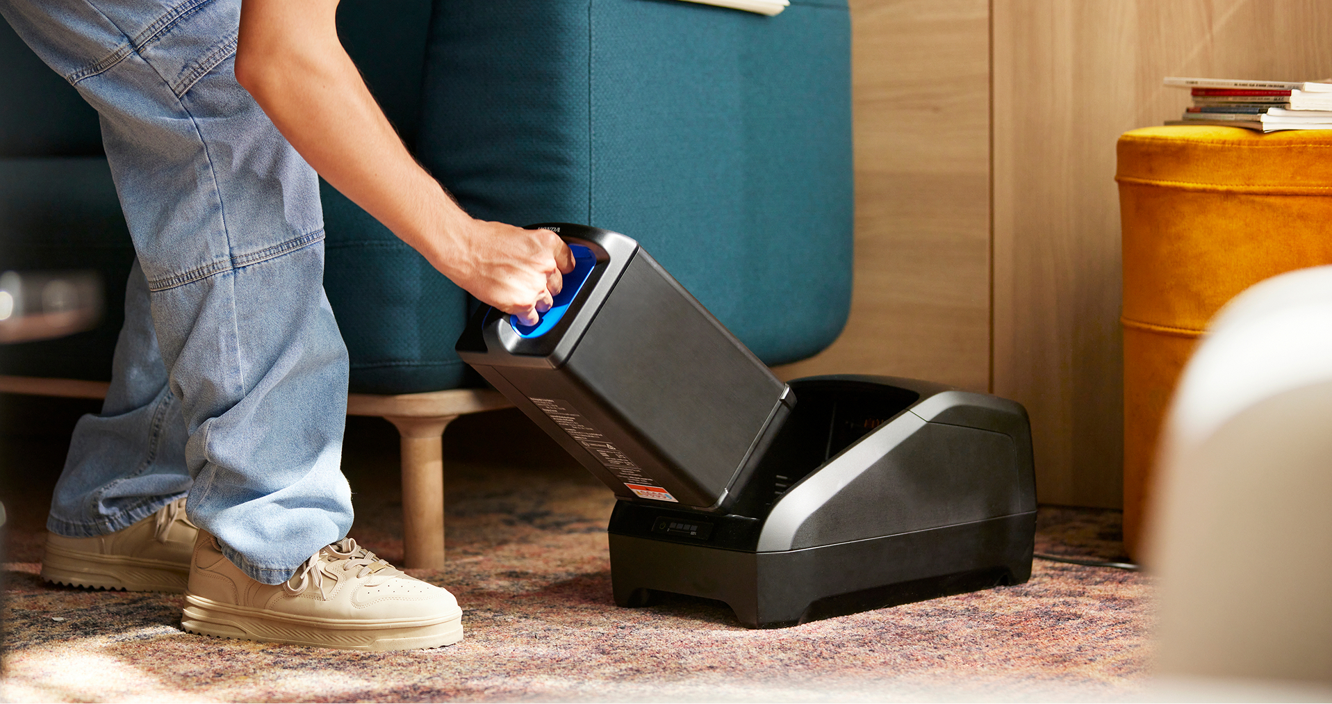 Elektroroller sind für lange Strecken ausgelegt. Die Produkte von Honda verwenden eine Mobile Power Pack(MPP)-Batterie und ein Ladegerät. So kannst du die Batterie herausnehmen und zu Hause oder am Arbeitsplatz aufladen. Der EM1 e: kann mit einer vollen Ladung 41 km weit fahren, während der CUV e: eine Reichweite von über 70 km hat.