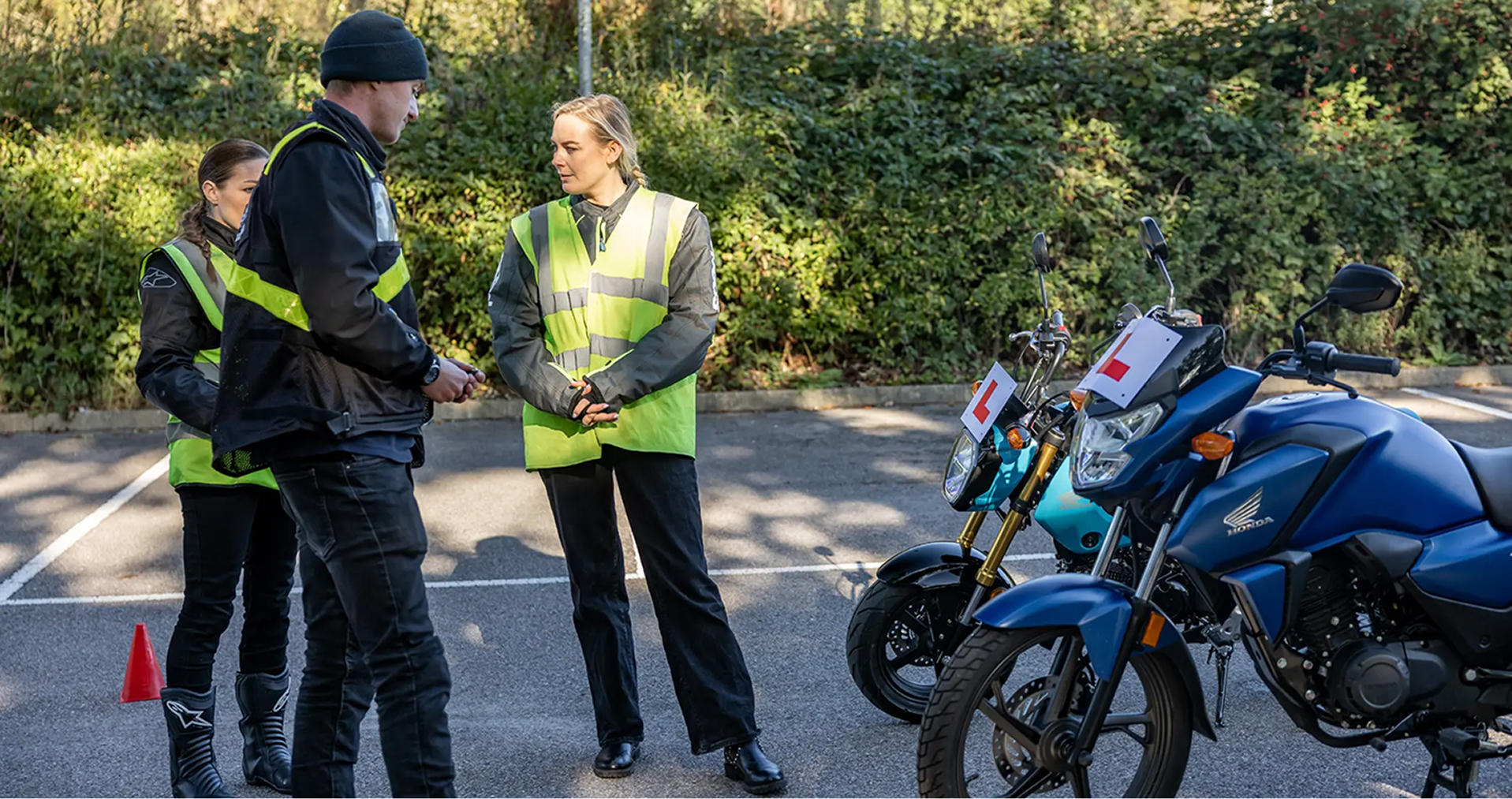 Unsere Kurse sind auf den jeweiligen Kenntnisstand der Fahrer zugeschnitten und fördern eine sichere und verantwortungsvolle Verkehrsteilnahme. So kannst du dein Motorrad und das Motorradfahren Tag für Tag genießen. Interessiert? Du kannst ein Honda-Motorrad in einer sicheren, kontrollierten und freundlichen Umgebung kostenlos ausprobieren. Du kannst den Nervenkitzel eines Honda-Motorrads ohne Probleme oder versteckte Kosten unter der Anleitung eines unserer von Honda zugelassenen Motorrad-Trainingslehrern in einem Zentrum in deiner Nähe erleben.