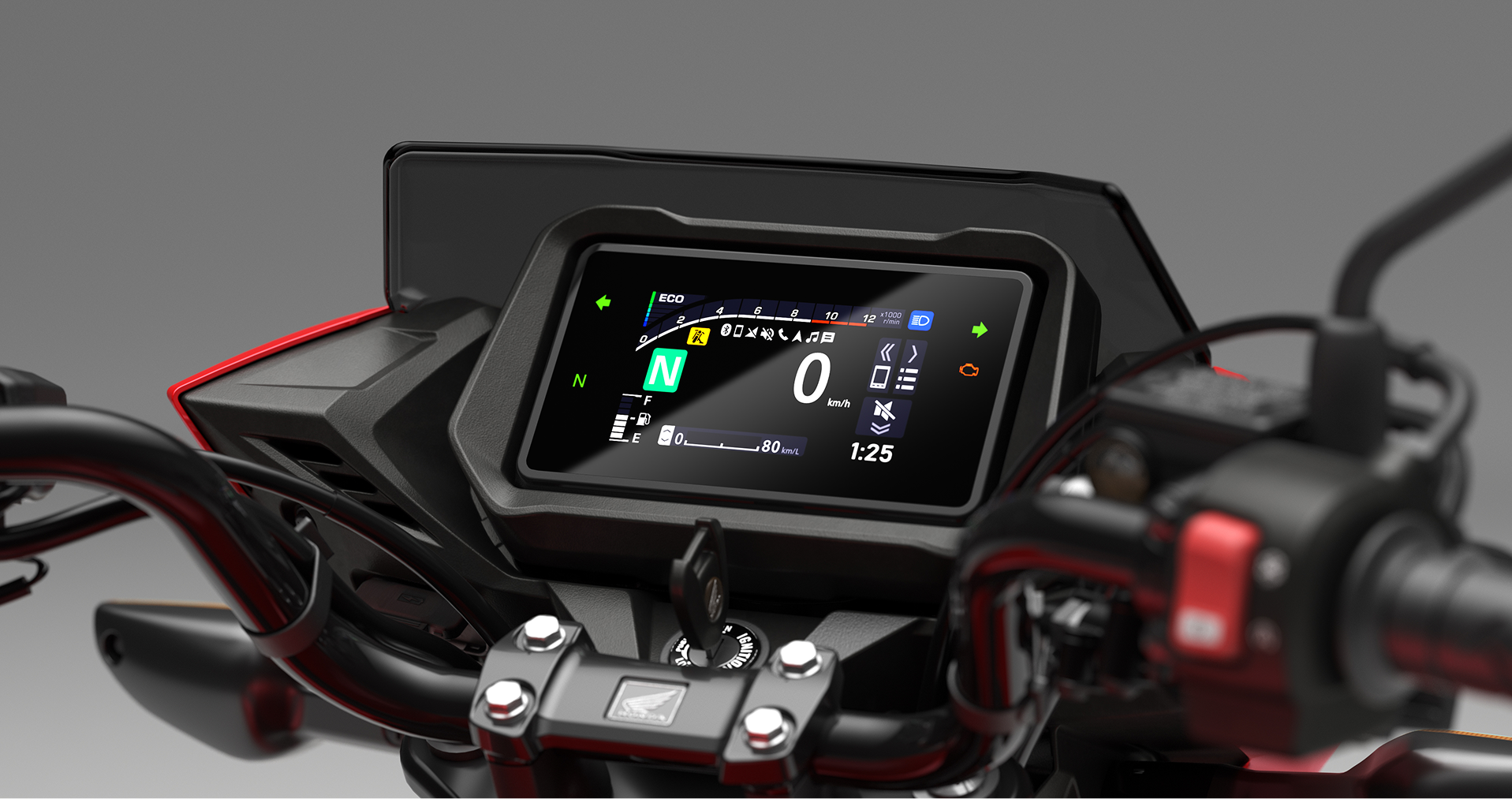 Die Leerlaufabschaltung des Motors an der Ampel oder bei kurzen Stopps steigert die Effizienz und verringert so die Emissionen und den Kraftstoffverbrauch. Sie funktioniert in jedem Gang und lässt sich auf Wunsch mit dem Knopf am Bedienelement auf der linken Lenkerseite deaktivieren.